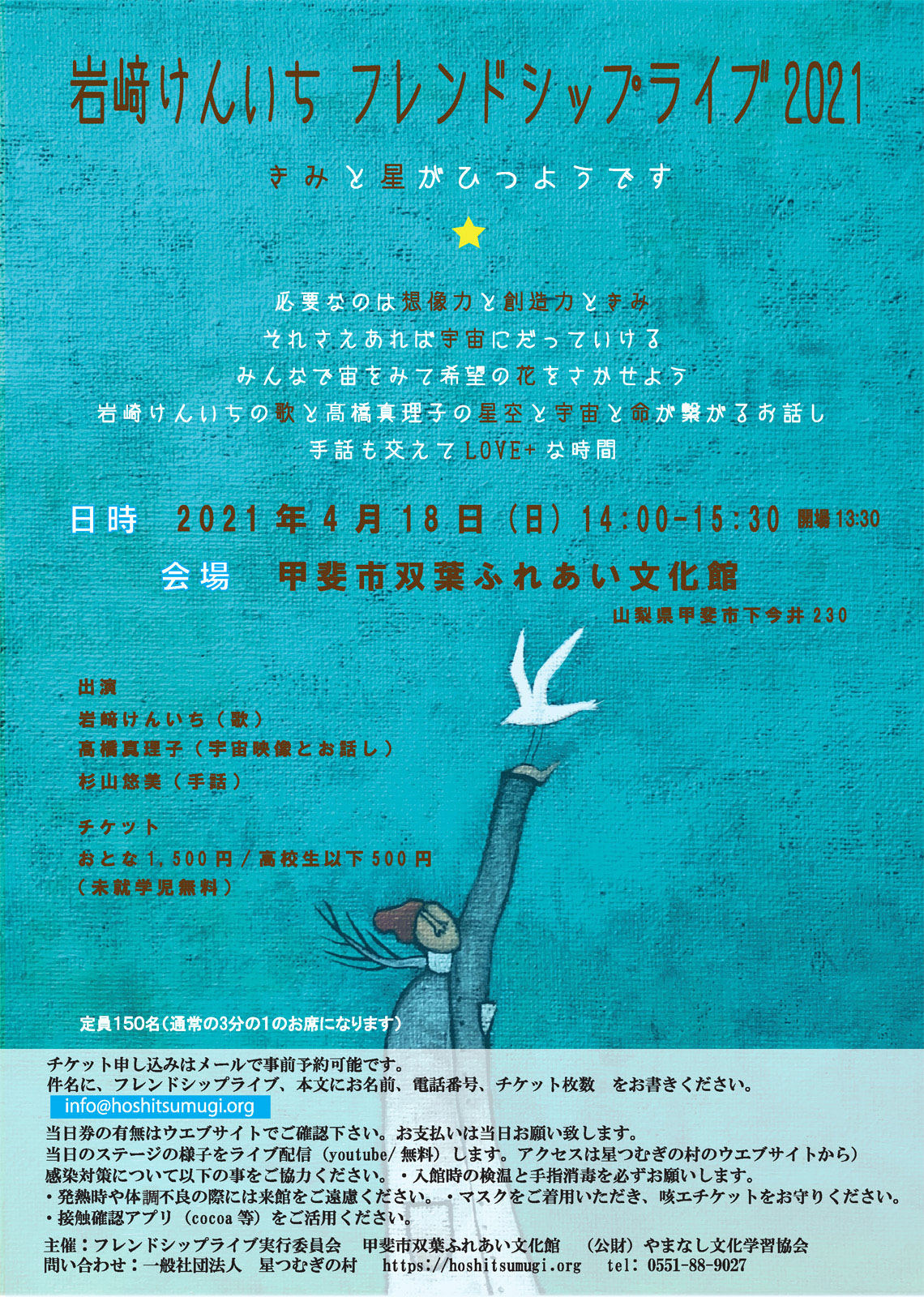 出演 岩崎けんいち(歌)、高橋真理子(宇宙映像とおはなし)、杉山悠美(手話)