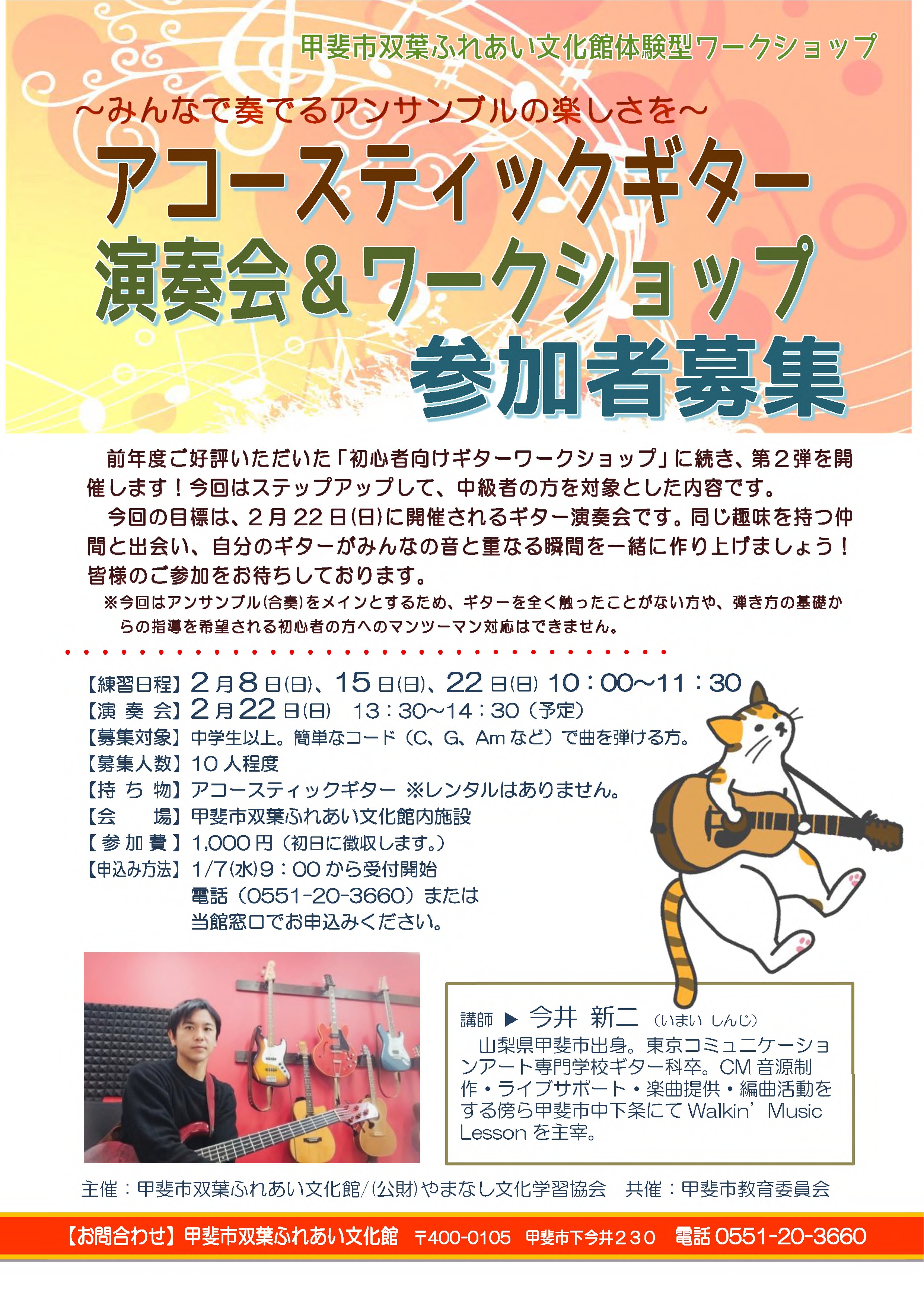 前年度ご好評いただいた「初心者向けギターワークショップ」に続き、第2弾を開催します。
